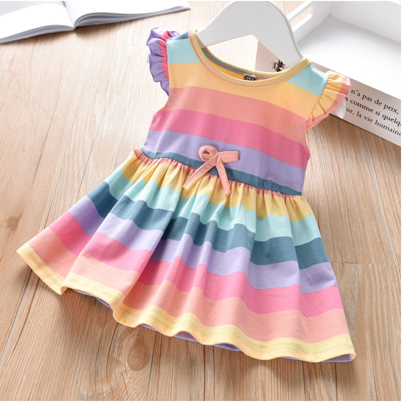 Baby Girls Cotton Clothing Sleeveless Dress 1 6 Years Colorful Rainbow Dress Baby Girls Birthday Dress Princess Dress Shopee Malaysia